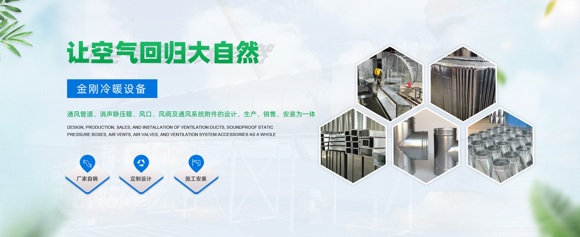 重慶金剛冷暖設備有限公司是集通風管道、消聲靜壓箱、風口、風閥及通風系統附件的設計、生產、銷售、安裝為一體的專業企業。擁有日生產、加工鍍鋅板、不銹鋼板、各型機制風管3000平方米的能力。我司產品形式多樣,結構新穎,連接牢靠,強度高、密封性好,符合規范、節省投資、安裝方便,能夠滿足廣大客戶的各種要求。公司堅持以“卓越、創新、快捷、誠信”的服務理念,為廣大客戶提供高質、高效、方便的服務。在完建的工程中取得了廣大客戶的一致好···